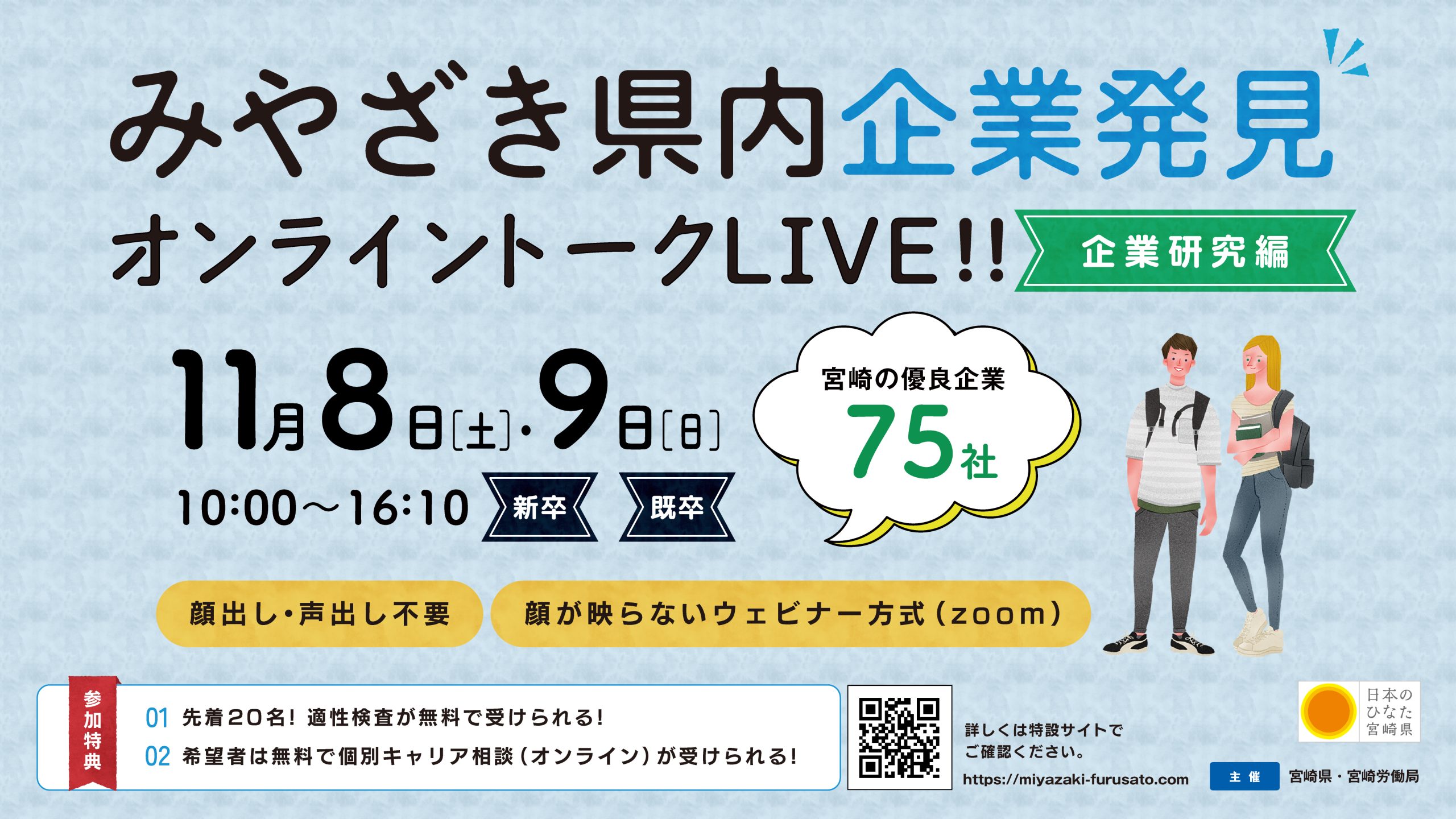 - みやざき県内企業発見オンライントークLIVE!!【企業研究編】参加者募集!