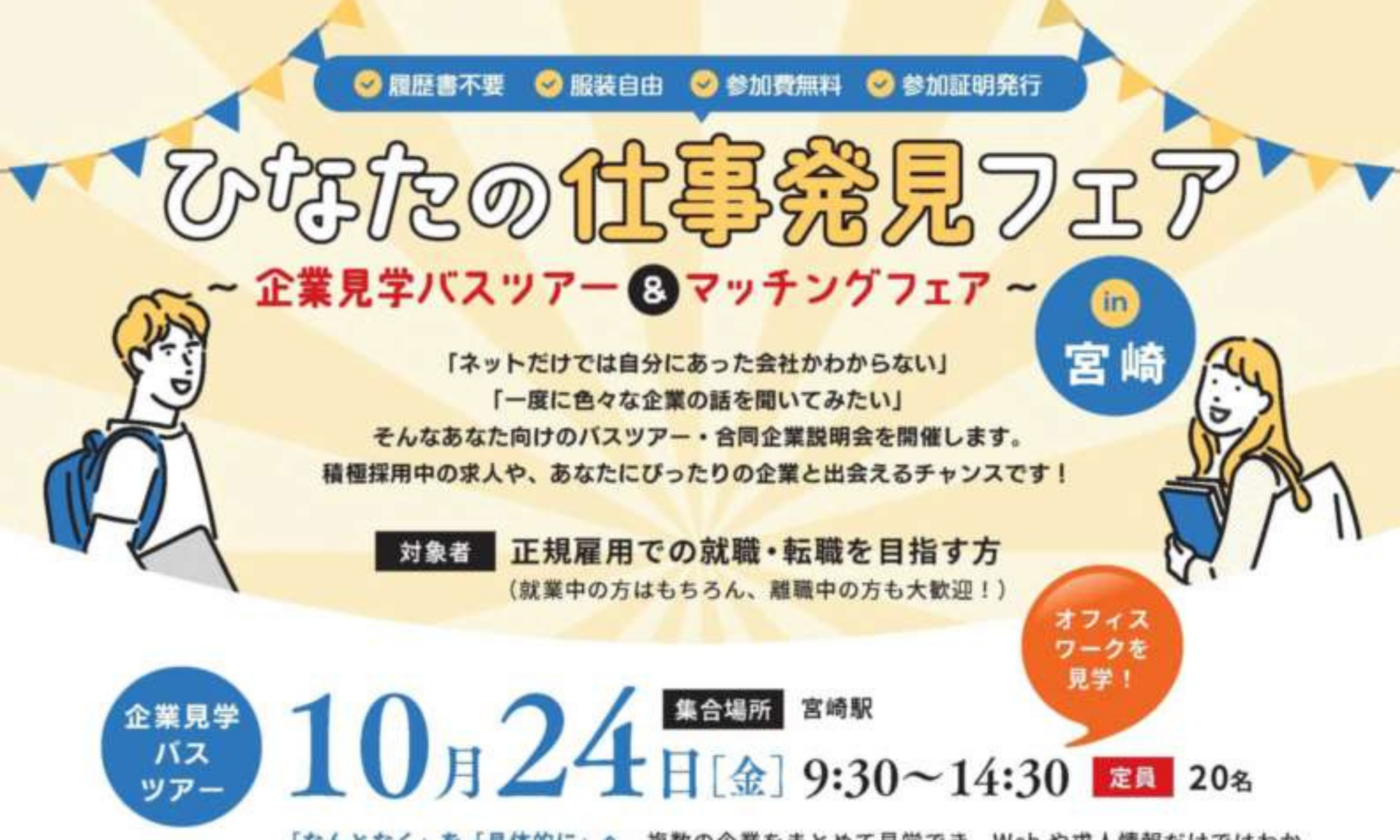 - 「ひなたの仕事発見フェア~企業見学バスツアー&マッチングフェア~in宮崎」を開催します!