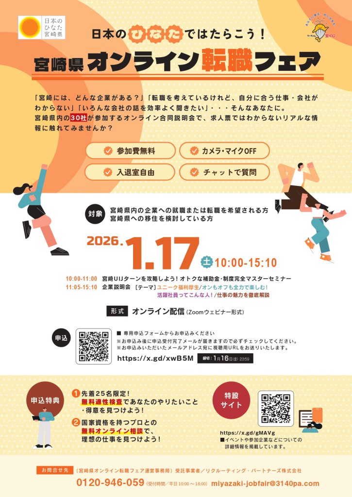 ■日本のひなたではたらこう!宮崎県オンライン転職フェア開催のお知らせ■