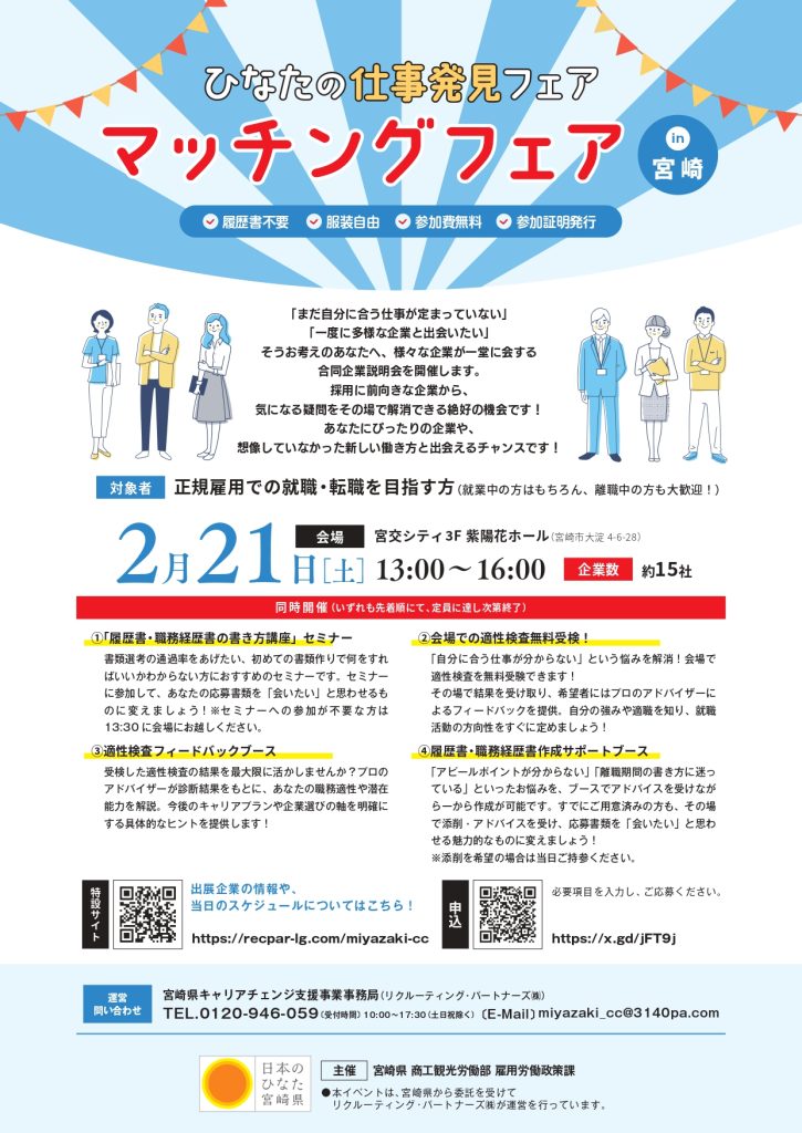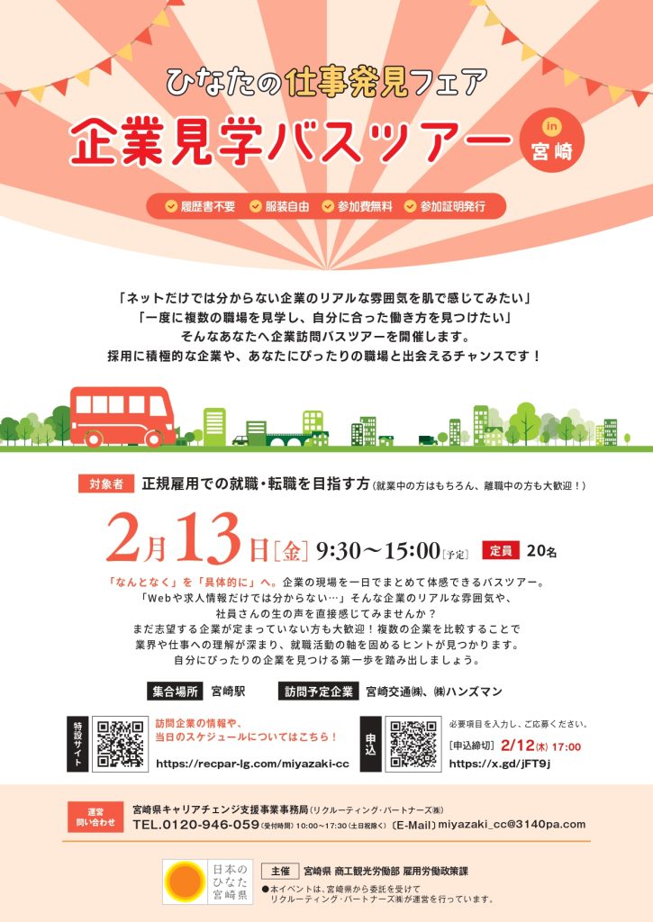 「ひなたの仕事発見フェア~企業見学バスツアー&マッチングフェア~in宮崎」を開催します!