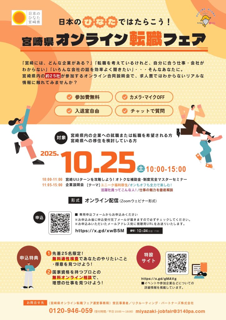 「日本のひなたではたらこう!宮崎県オンライン転職フェア」開催のお知らせ