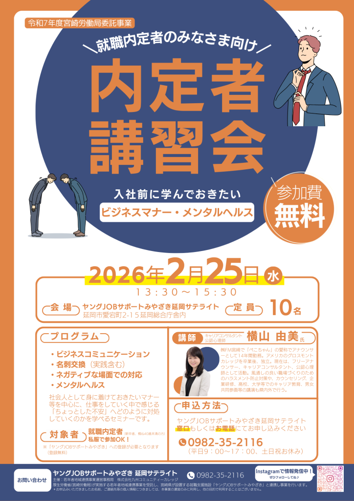 ヤングJOBサポートみやざき 延岡サテライトまでお電話にてお申込みください。