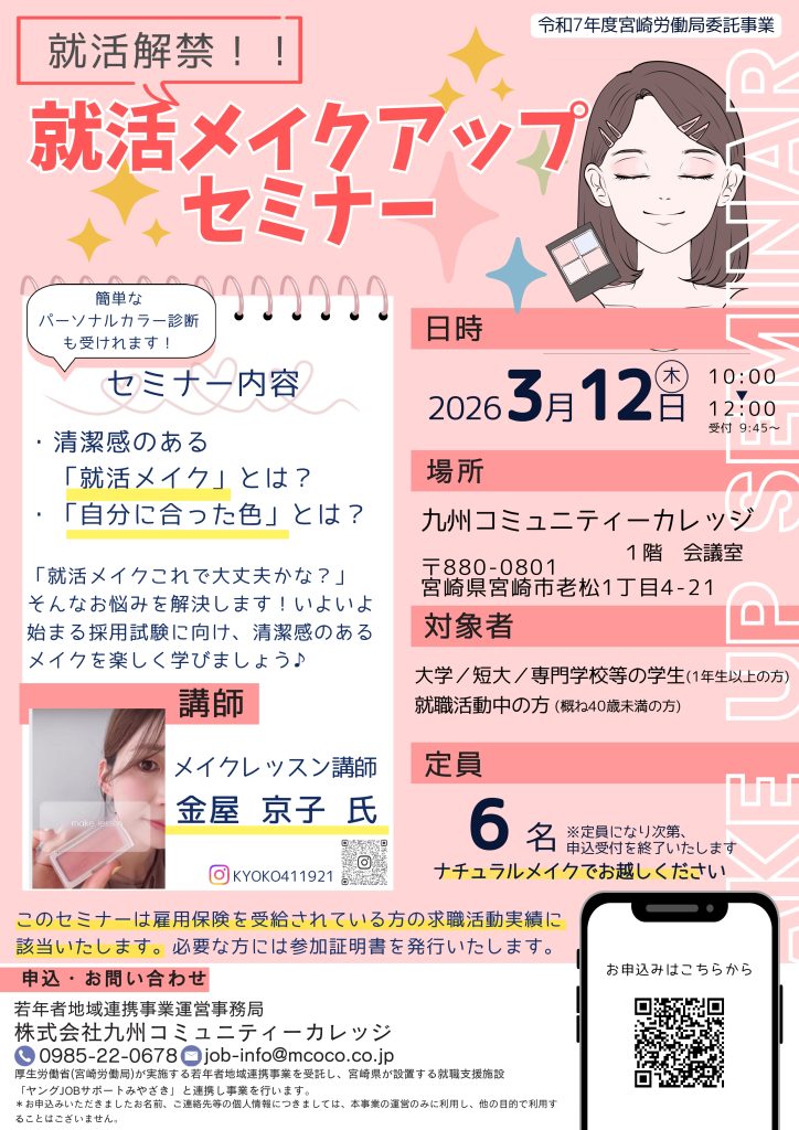 「就活メイクアップセミナー」を開催します
